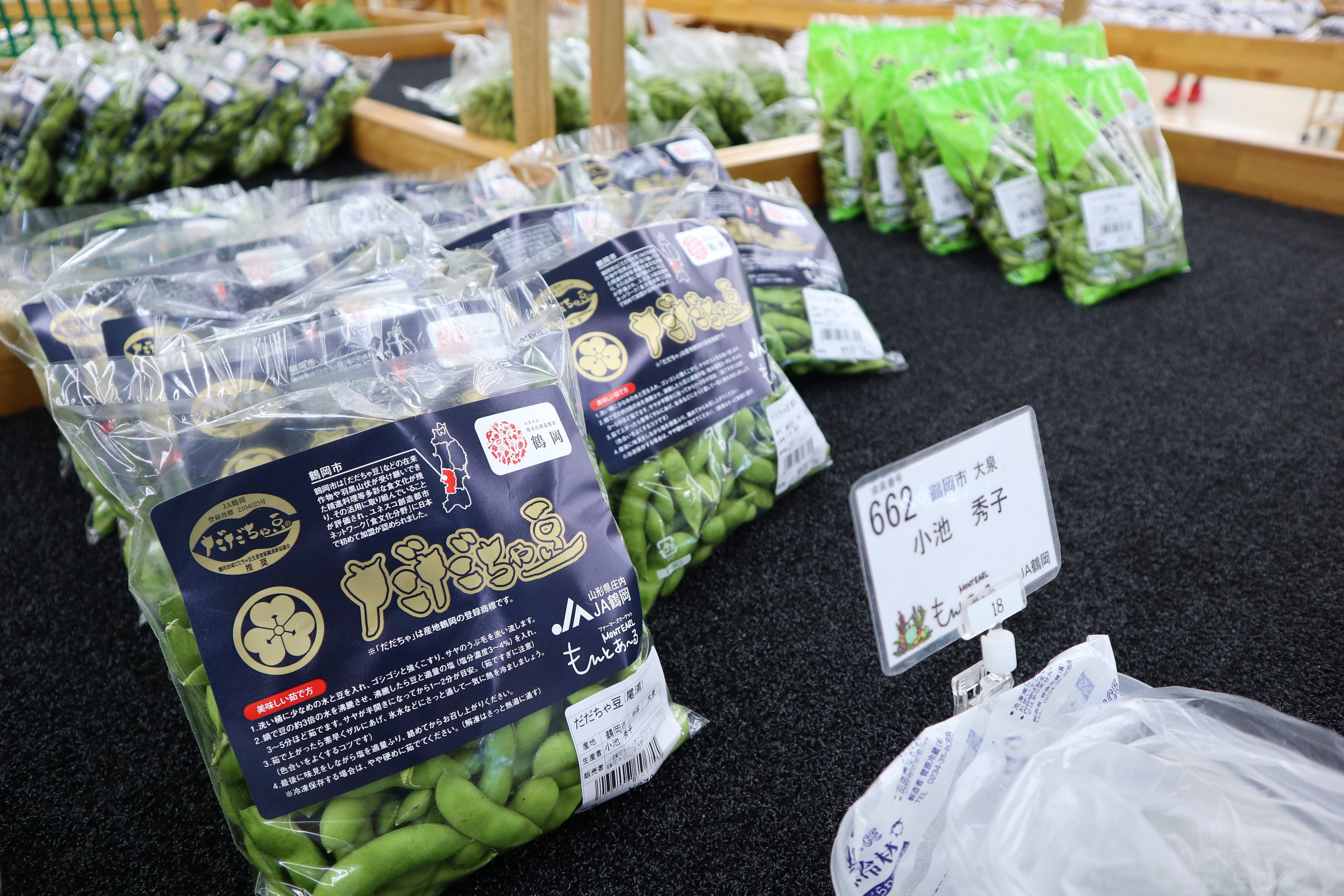 もんとあーるさんには名産の『ただ茶豆』をはじめ、野菜や果物、加工品やお菓子などがあって