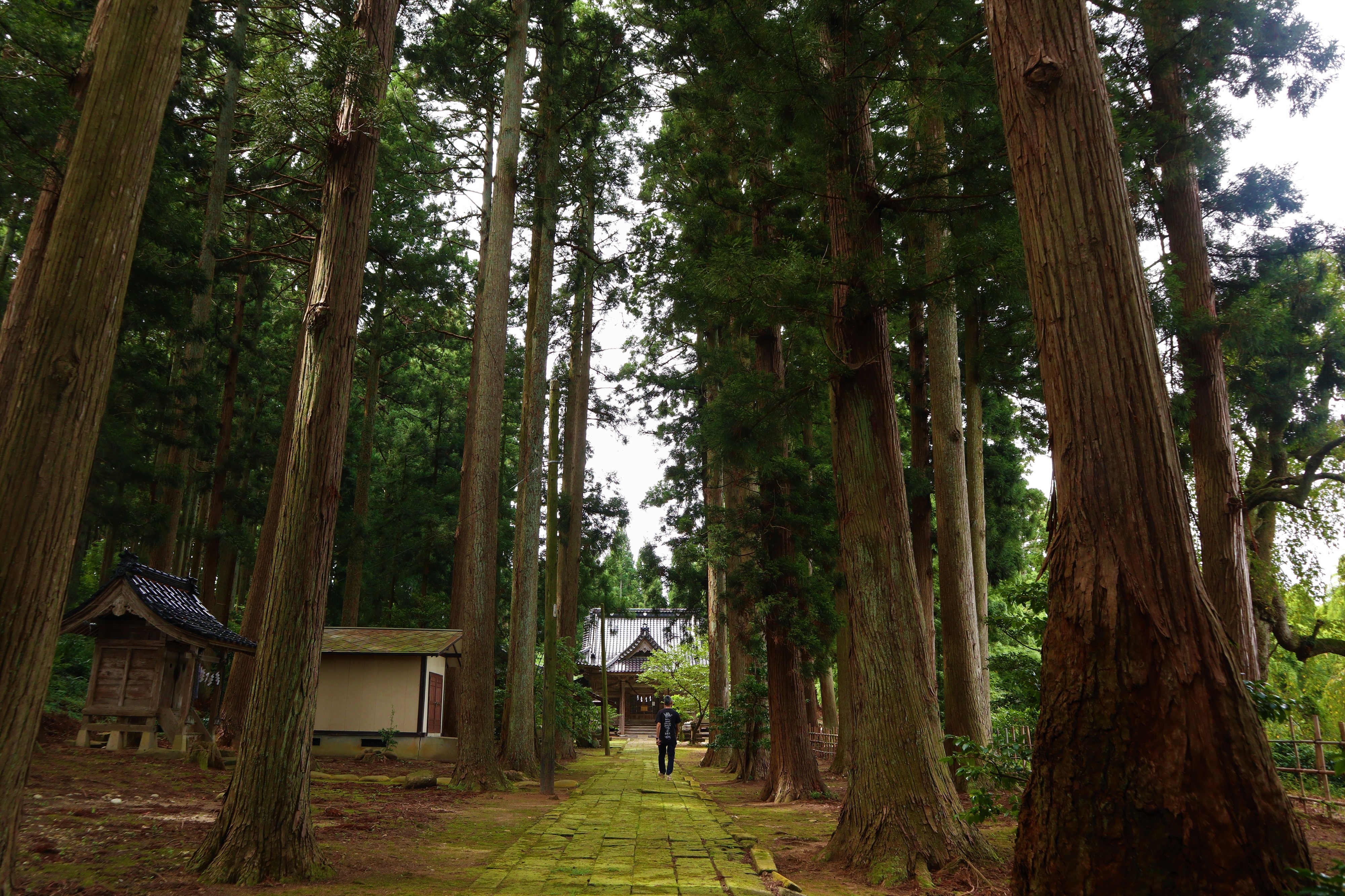 木々が高くそびえ、まっすぐに敷かれた石畳には苔が生え、美しいまるで作品のよう。