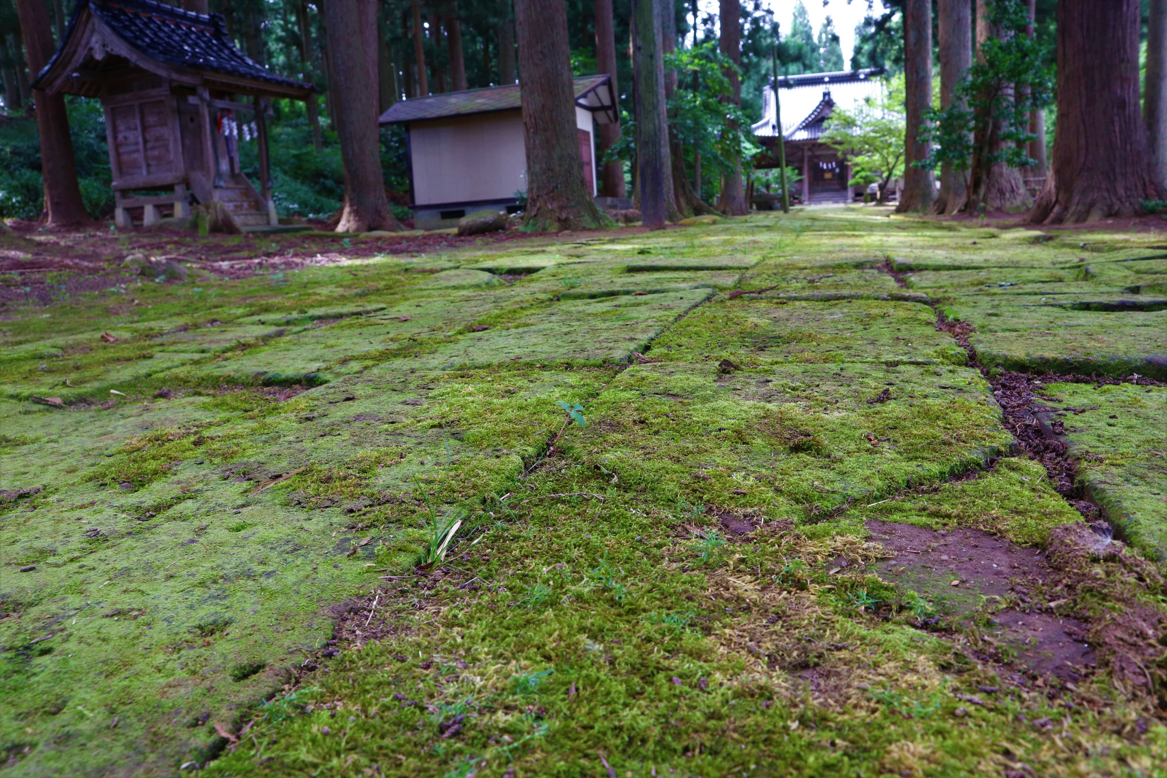 There were an approach to the shrine that trees rise to the sky and be moss-coverd stone pavement.