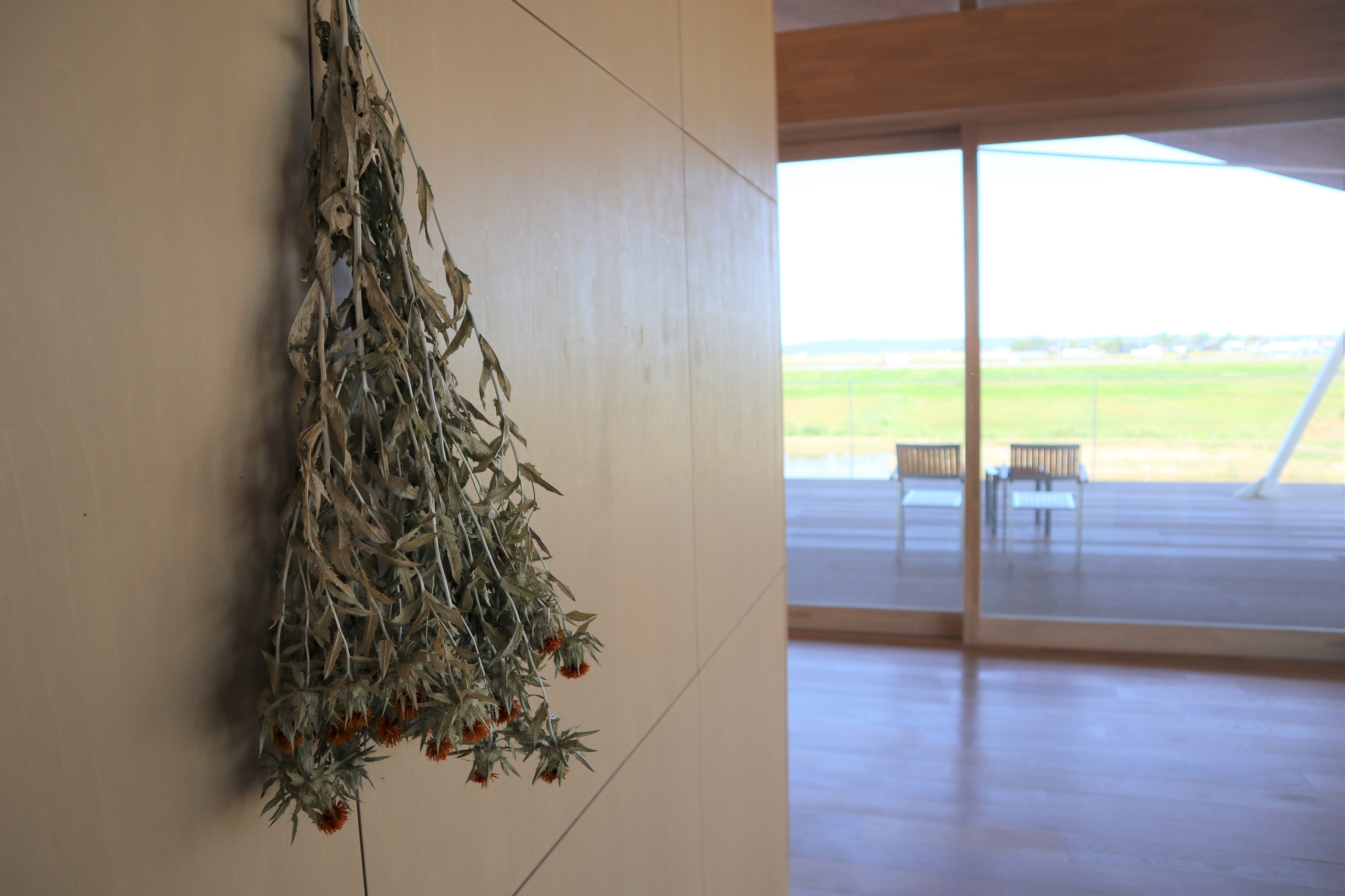 フロントの両サイドには、地元の作家さんの作品やワインや日本酒、名産などがオシャレにディスプレーされていて、